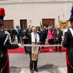 Particolare significato ed anche commozione ha suscitato il momento della consegna delle bandiere Nazionale ed Europea e del taglio del nastro da parte della madrina della cerimonia, la signora Federica Giaccari, vedova dell’Appuntato Scelto Manuele Braj, deceduto in Afghanistan il 25.06.2012 ed insignito della “Croce d’Onore alle vittime di atti di terrorismo o di atti ostili impegnate in operazioni militari e civili all’estero”, alla memoria, che è stata consegnata lo scorso 5 giugno a Roma, dal Ministro della Difesa, sen. Mario Mauro, nel corso della celebrazione del 199° anniversario della fondazione dell’Arma dei Carabinieri, alla presenza del Comandante Generale, Gen. di C.A. Leonardo Gallitelli.