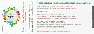 Il 5 luglio 2013 a Muro Leccese alle 20:30, presso il Convento dei Domenicani, si terrà la Prima Edizione del Premio di Poesia “Pina Martinucci”.