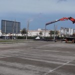 Un impianto pubblicitario di m.18×3 è caduto e sono dovuti intervenire, Vigili del Fuoco e Protezione Civile, prima per transennare e poi con una enorme gru spostare gli impianti.