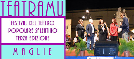Il prossimo appuntamento del cartellone di “Teatramu” è venerdì 5 settembre, alle ore 20.30, presso Piazza Bachelet, con “Lu nonnu Fedinandu” di Raffaele Del Savio, interpretato dalla Compagnia Panta Tha Paddhicaria di Calimera. La rassegna si concluderà il 13 settembre prossimo, con la premiazione della compagnia vincitrice del concorso.