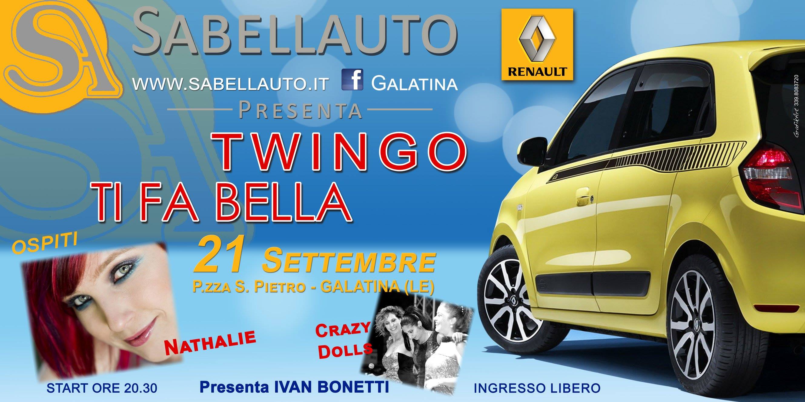 UNA SERATA DEDICATA ALLA BELLEZZA A GALATINA, CON MUSICA LIVE, MODA, OSPITI E SPETTACOLO PER LA PRESENTAZIONE UFFICIALE DELLA NUOVA TWINGO NEL SALENTO. CAST TUTTO AL FEMMINILE PER LA FESTA DI FINE ESTATE FIRMATA SABELLAUTO (21 SETTEMBRE, DALLE 20.30 NELLA CENTRALE PIAZZA SAN PIETRO):