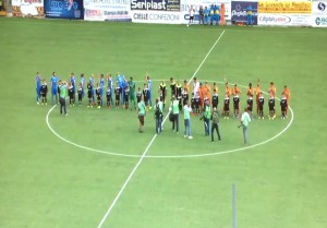 I salentini in dieci e in svantaggio non perdono le speranze: al minuto ottantotto Surraco fa tremare la difesa avversaria con un destro su punizione che attraversa tutta la linea di porta ma non entra in rete.