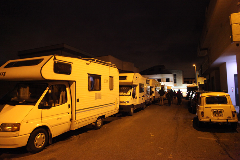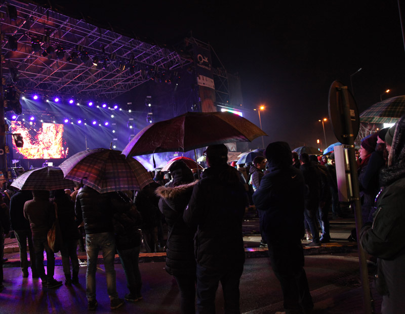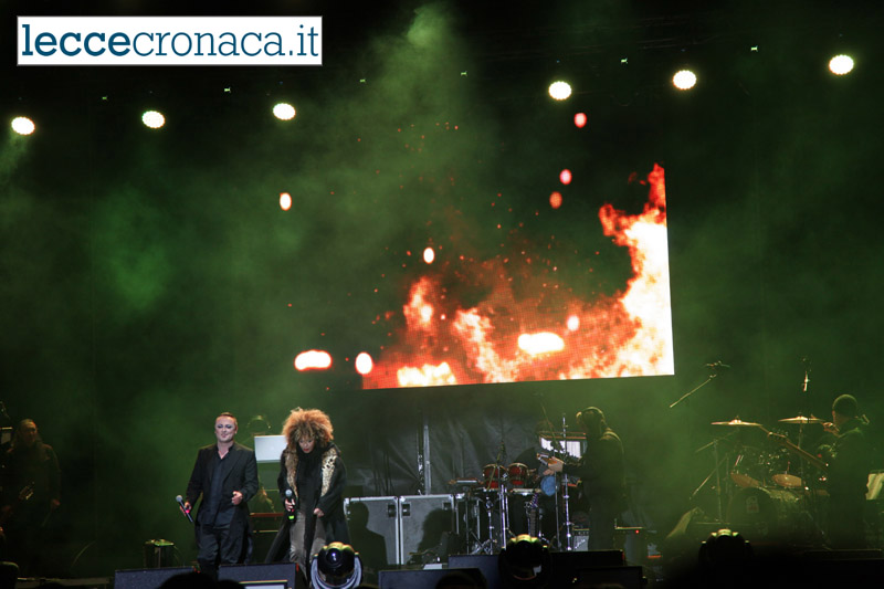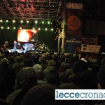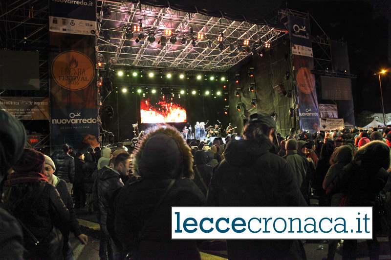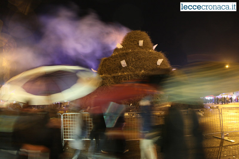 (v.m.)______Dopo i fuochi d’artificio, dopo le dichiarazioni che i politici nostrani hanno rilasciato alle emittenti televisive, ecco come si presentava qualche ora fa, intorno alle 22.00, la Focara di Novoli e la zona circostante. Mentre ” le fascine della Focara ardevano lentamente” a causa della pioggia, sul palco si scatenava l’inferno.