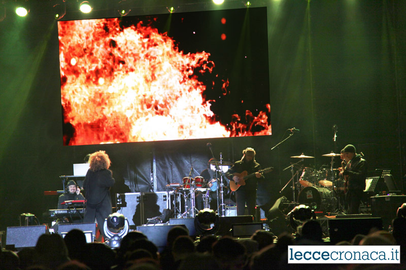 Sullo schermo venivano proiettate le immagini del fuoco che tutto divora e purifica, mentre i gruppi musicali che si esibivano sul palco riempivano la piazza di suoni e di canti.