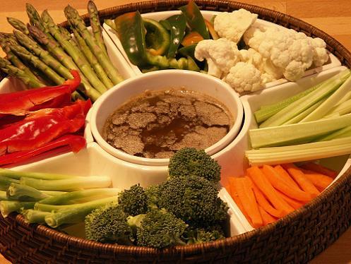 Oggi giornata festiva, per un pranzo di Pasqua alternativo, ci cimentiamo con un mito, e con un rito, più che con un piatto, delle regioni del Nord, Piemonte soprattutto, in linea del resto con le nostre impostazioni vegetariane e salutiste. Siamo poi proprio nel momento giusto dell’ anno. Da consumare calda, come dice il nome, con verdure cotte e crude, a piacimento: peperoni, finocchi, zucchine, cavoli, carote, sedani, carciofi e quant’ altro a piacimento.