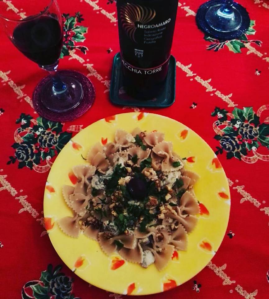 Un buon bicchiere di vino rosso salentino a completare un piatto unico delizioso, per una cena casalinga comunque festiva.