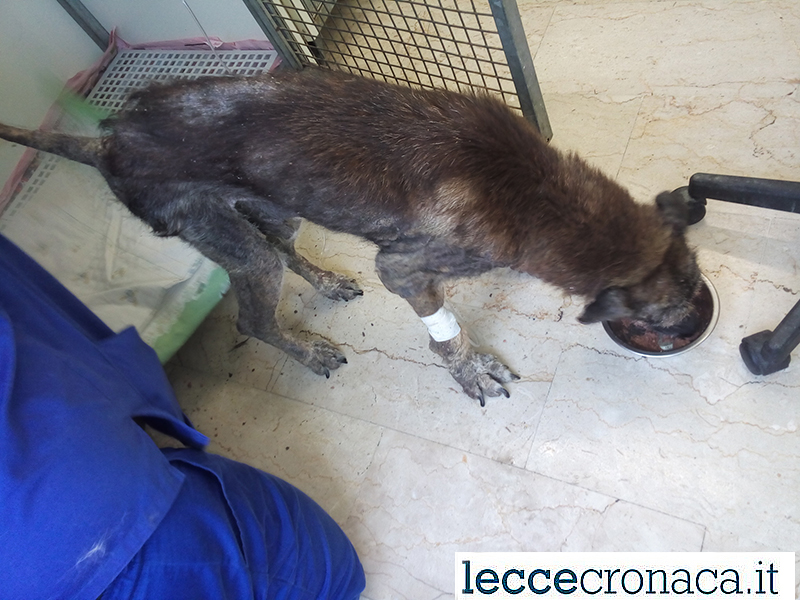 Dai primi accertamenti fatti, lasciandolo tranquillo, perché ancora molto debole, è stato riscontrato risulta positivo alla filariosi, leishmania test negativo, rogna sarcoptica, stato di denutrizione e c’è la presenza di un’ernia perianale. Il resto degli esami verranno eseguiti con calma data la sua situazione critica.