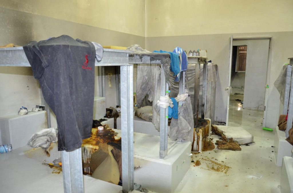 Durante la manifestazione alcuni ospiti della struttura hanno iniziato ad agitarsi e, dopo essersi lamentati delle condizioni igienico sanitarie e del cibo, hanno appiccato il fuoco, dapprima a due stanze del modulo A e immediatamente dopo, a una stanza del modulo B.