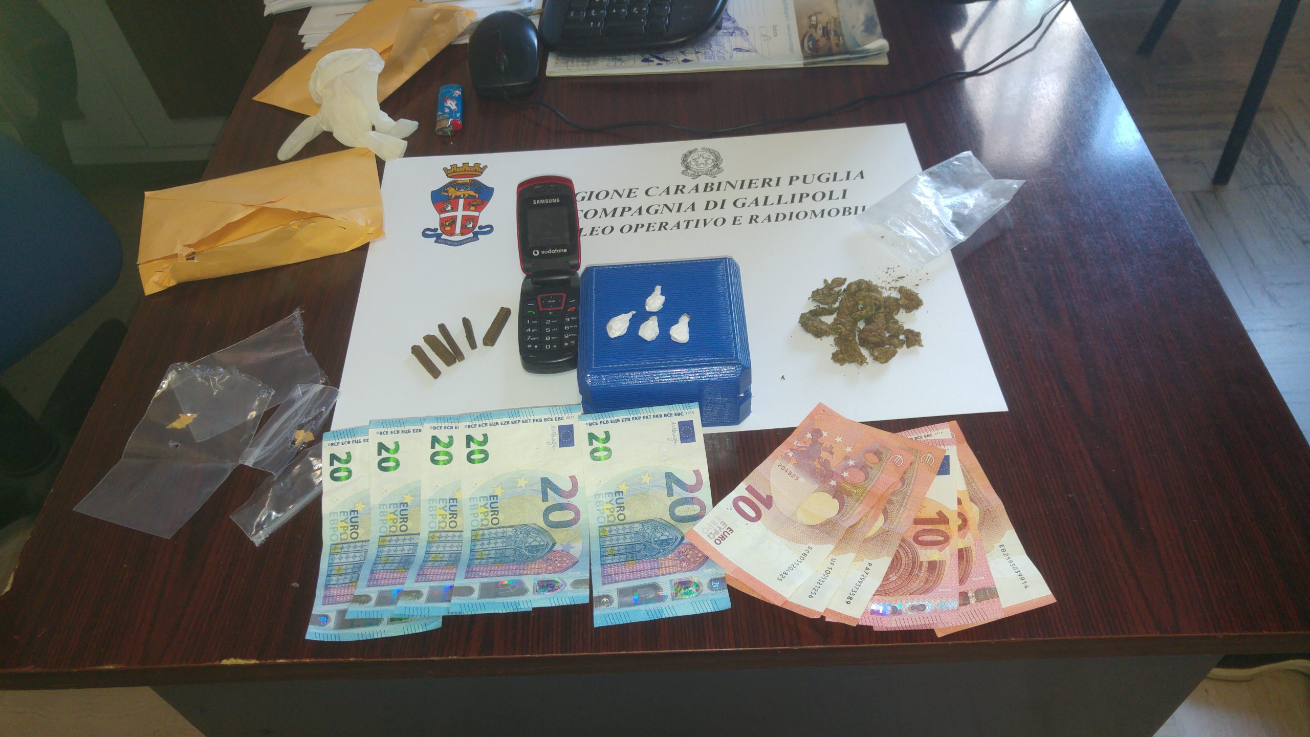 (g.m.)______L’ estate sta finendo, lo spaccio a Gallipoli, invece, sembra proprio di no. Dopo i tanti episodi delle scorse settimane, questa notte c’è stato un nuovo arresto, un giovane cittadino del Gambia, Buba Drame (nella foto), 21 anni, senza fissa dimora, sorpreso dai carabinieri sul litorale, attorniato da ragazzi, con addosso diverse dosi di cocaina, barrette di hashish e varie confezioni di marijuana (nella foto).