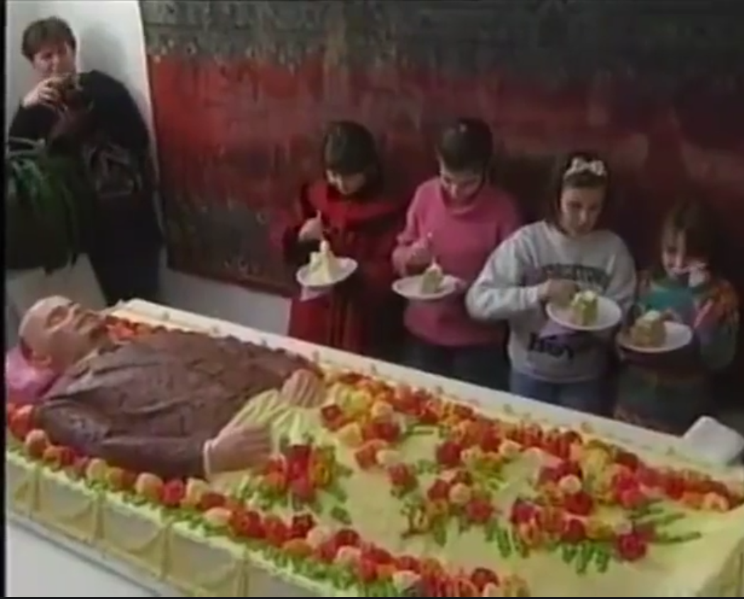 Una torta speciale nel cuore di Mosca: grazie per la foto al pasticcere che fa rivivere per qualche ora Lenin. I bambini russi mangiano la torta con sacro ardore, lo stesso che ha spinto il popolo rosso verso la Rivoluzione d’Ottobre del 1917.