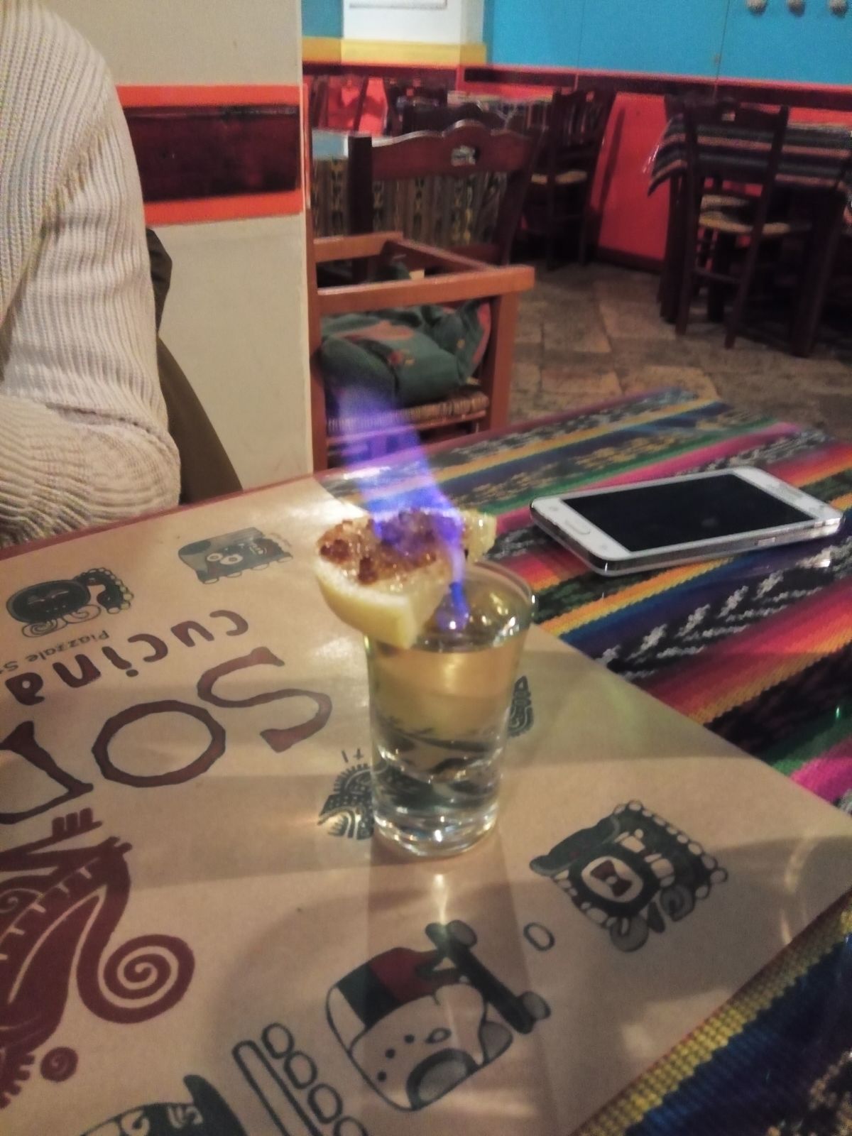 Grazie per la foto all’amico, nonché lettore di leccecronaca.it, Luigi che ha provato il brivido di un liquore artigianale messicano, ornato da un sombrero ardente di limone e zucchero di canapa…