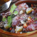 POLLO AL VINO ROSSO. Per quattro persone______ 1 pollo pulito e tagliato a pezzi – 100 g di cipolline pelate – 200 g di funghi misti freschi (anche il sacchetto surgelato è ok) – 3 scalogni – 2 carote – 80 g di pancetta affumicata a dadini – qualche rametto di timo fresco – 2 foglie […]