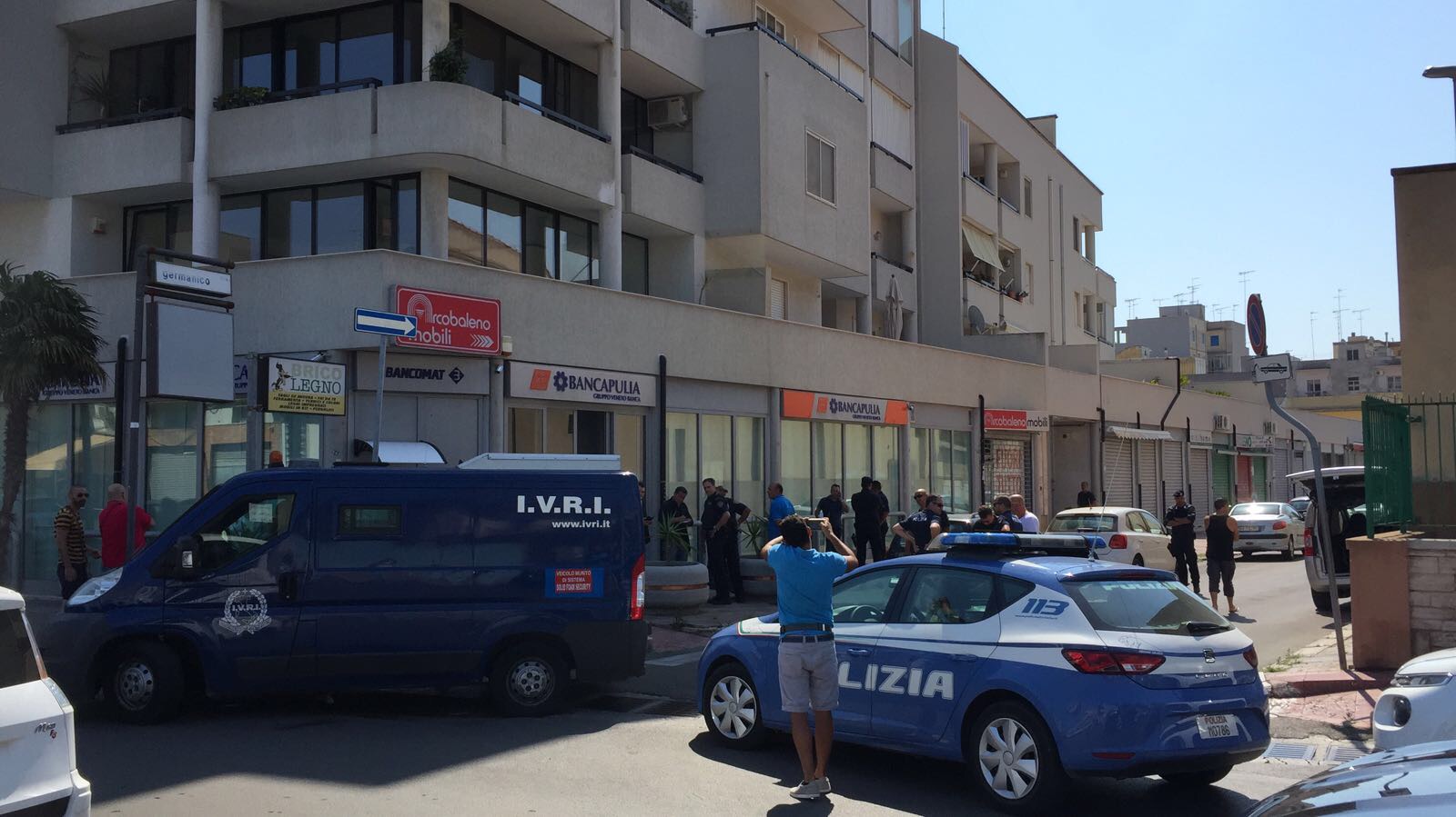 Sono le 10.30 quando un furgone portavalori dell’ istituto di vigilanza Ivri arriva di fronte la BancApulia in via Germanico 8nella foto). Tutto accade poi in rapidissima successione.