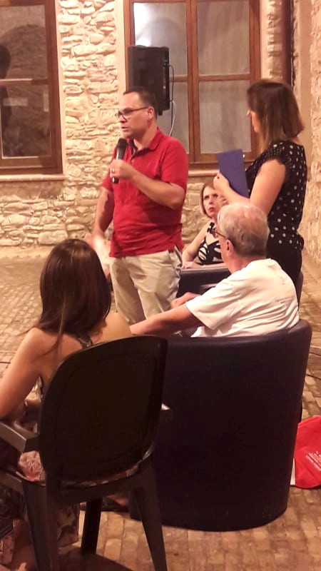 Edito da Aletti ‘Sul mio corpo che trema’ di Stefano Giuseppe Scarcella (nella foto, durante la presentazione a Rocca Imperiale, nell’ambito del festival letterario ‘Il Federiciano’ di fine agosto) viene così presentato dallo stesso autore: “Questa raccolta poetica è un traguardo da cui ripartire e ne sento il peso della responsabilità. Vent’anni di addestramento e di passione che mi hanno portato verso una poesia pulita, lavata e nitida, che mi hanno reso adulto, maggiorenne nella scrittura, che mi hanno cambiato profondamente. Passando dalla scrittura per sofferenza, attraversando un riequilibrio di bisogni e attitudini, giungendo al tentativo di allineare sullo stesso orizzonte autore e lettore, così da far rinascere lo stesso vibrato, l’identico tremore, la medesima emozione.