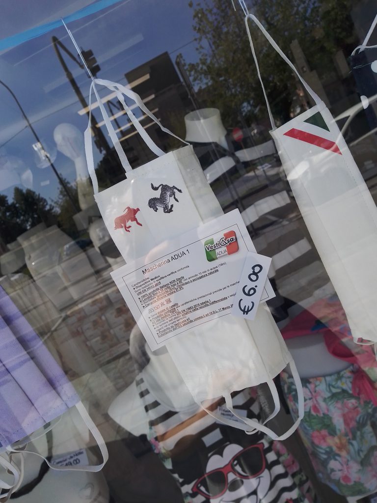 Ho fatto fare pure quella uguale al costume da bagno… eeeeh no! La mascherina non si tocca, anzi, non si toglie…