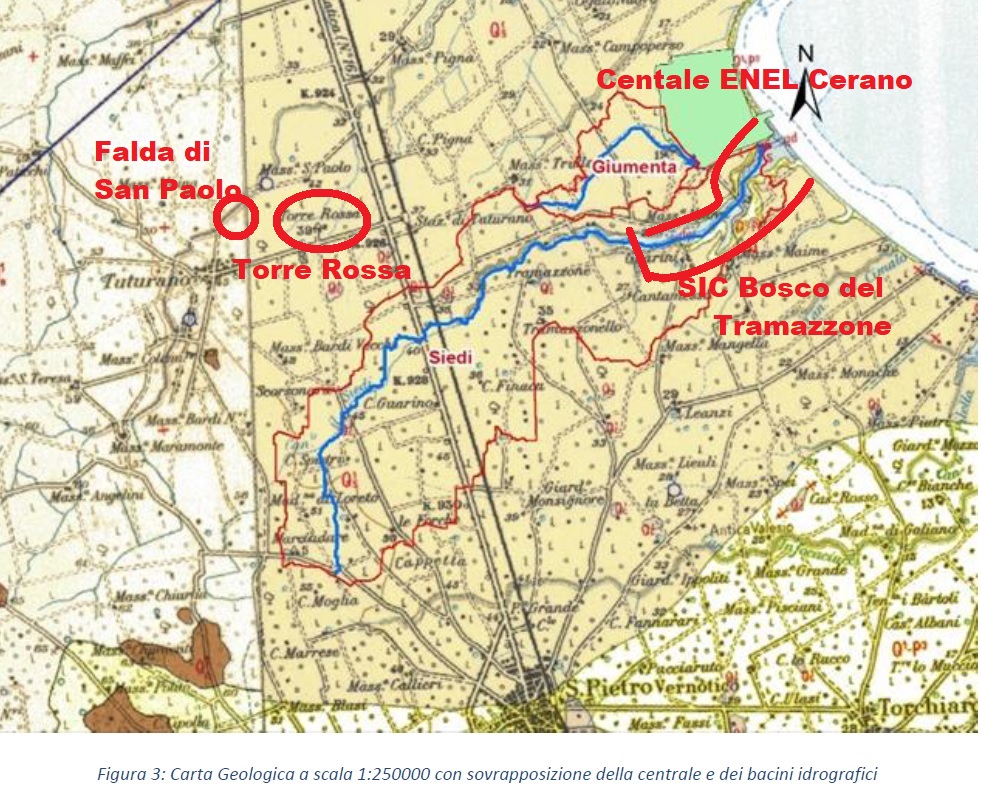 Ma tale falda prosciugata da SNAM alimenta anche il bacino del Canale Li Siedi nella Sito di Interesse Nazionale SIC IT9140001 Bosco di Tramazzone, Riserva Naturale Regionale Orientata Bosco di Cerano inserita nella Rete Natura 2000. Il Bosco di Tramazzone era stato sponsorizzato come Luogo del Cuore FAI proprio dal Comune di Brindisi. Tutta l’area di Tuturano è sottoposta a tutela idrogeologica, in quanto le falde superficiali (fino a pochi metri di profondità) sono di acqua meteorica (raccolta dalle piogge), mentre oltre i cento metri le falde sono salinizzate, perciò inutilizzabili”.