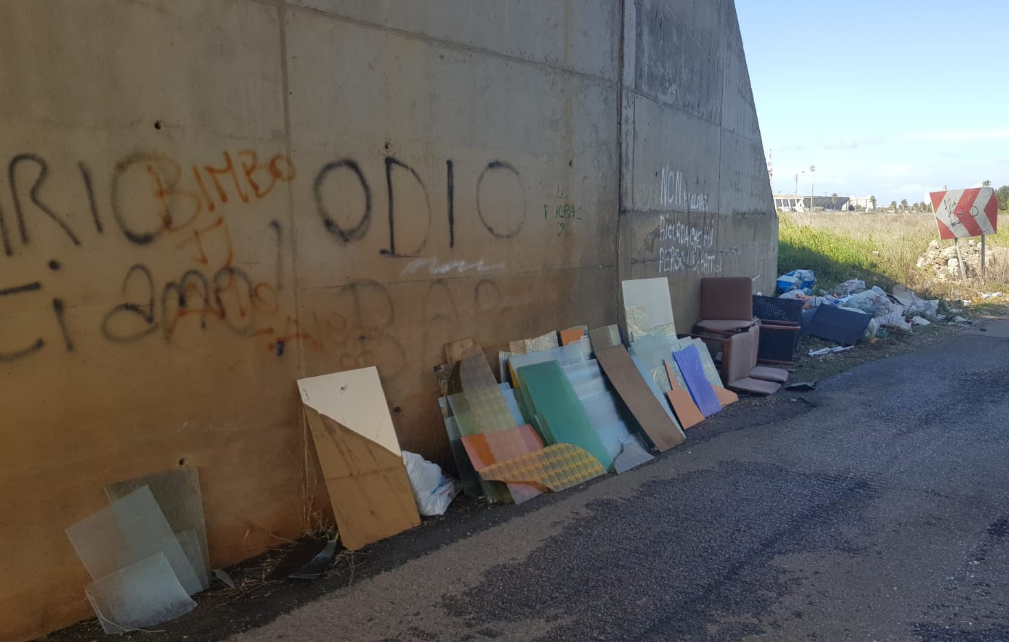 Se un forestiero dovesse passare in via Scrimieri e via Ameri a Lecce vicino lo Stadio, non troverebbe sicuramente il migliore dei biglietti da visita. Tutto il ciglio della strada dell’area verde, cioè di fronte all’immobili confinanti con lo Stadio, trasformato in una discarica a cielo aperto, di chi, in barba alla collettività e al decoro urbano, abbandona i rifiuti domestici di ogni genere. Ci sono materassi, porzioni di mobilio, vecchi ombrelli, sacchetti chiusi con rifiuti all’interno, vetri, vecchi pc, vetro plastica e nell’aria la puzza dei miasmi dell’ immondizia.