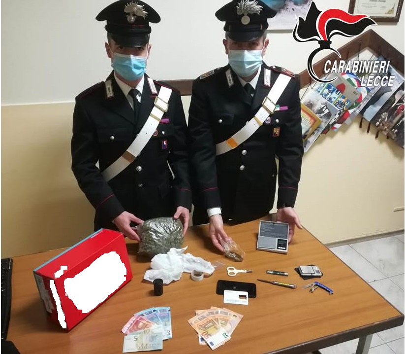 (e.l.)____Questa mattina a Nardò i Carabinieri del locale Comando Stazione, nel corso di un servizio specifico, hanno arrestato in flagranza di reato un giovane di 21 anni,  trovato in possesso in  casa sua di duecentotrentotto grammi di marijuana, dieci grammi di hashish e due bilancini di precisione (nella foto).