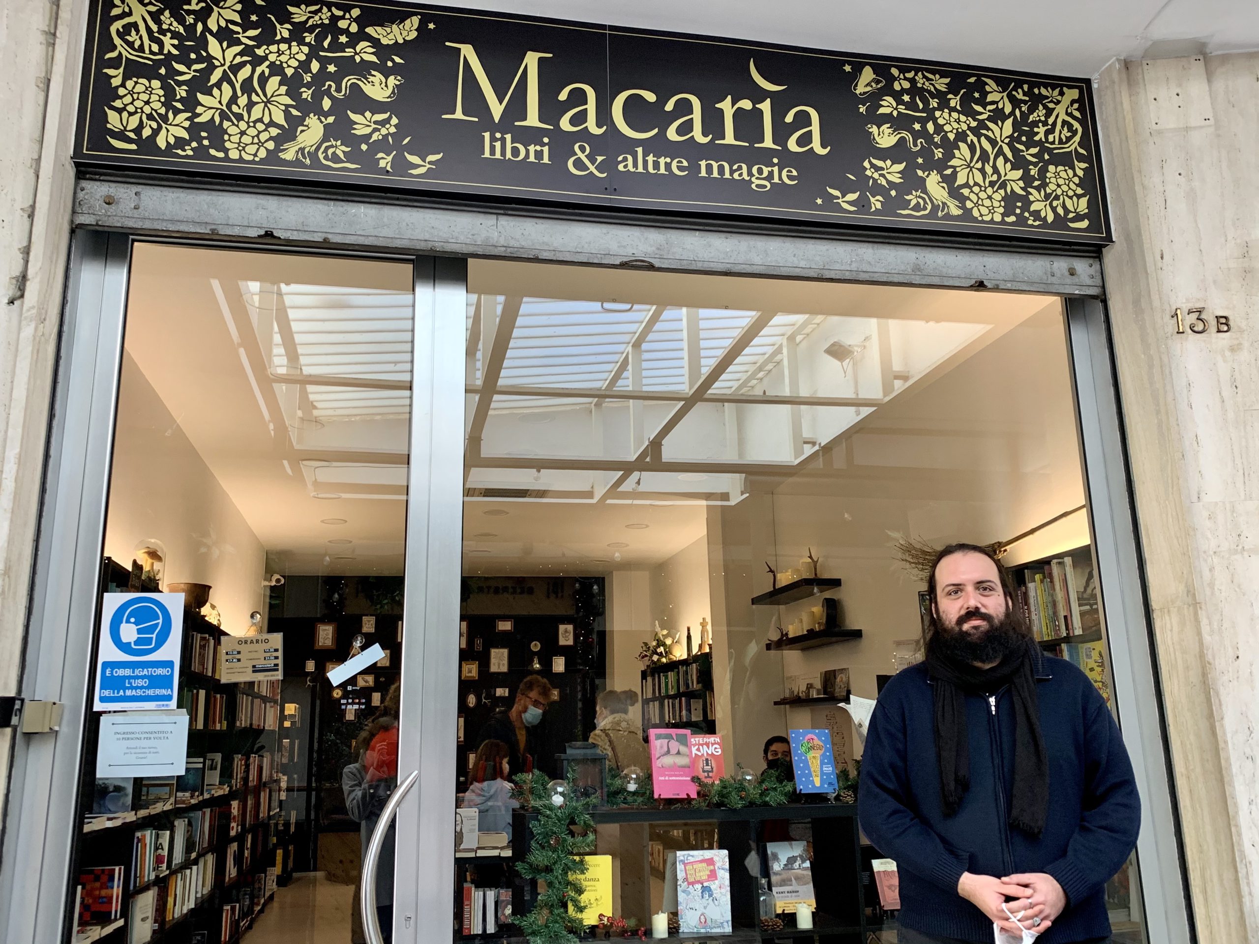 Nell’arteria principale della città di Gallipoli, Corso Roma, al civico 13B, tra fiocchi rossi e led a intermittenza, quest’anno a Natale un’insegna brilla più delle altre. Si è acceso un nuovo sogno, un faro di luce in una città che da anni era priva di librerie indipendenti, botteghe culturali in cui proporre qualità ed essere laboratori creativi. Un’assenza che ha portato i giovanissimi Andrea Donaera (in alto, nella foto di copertina), Alessio Fasano, Gaia Giovagnoli ed Edoardo Macrì (nella foto in basso) a dare vita a “Macarìa” che, in dialetto salentino, vuol dire “stregoneria”.