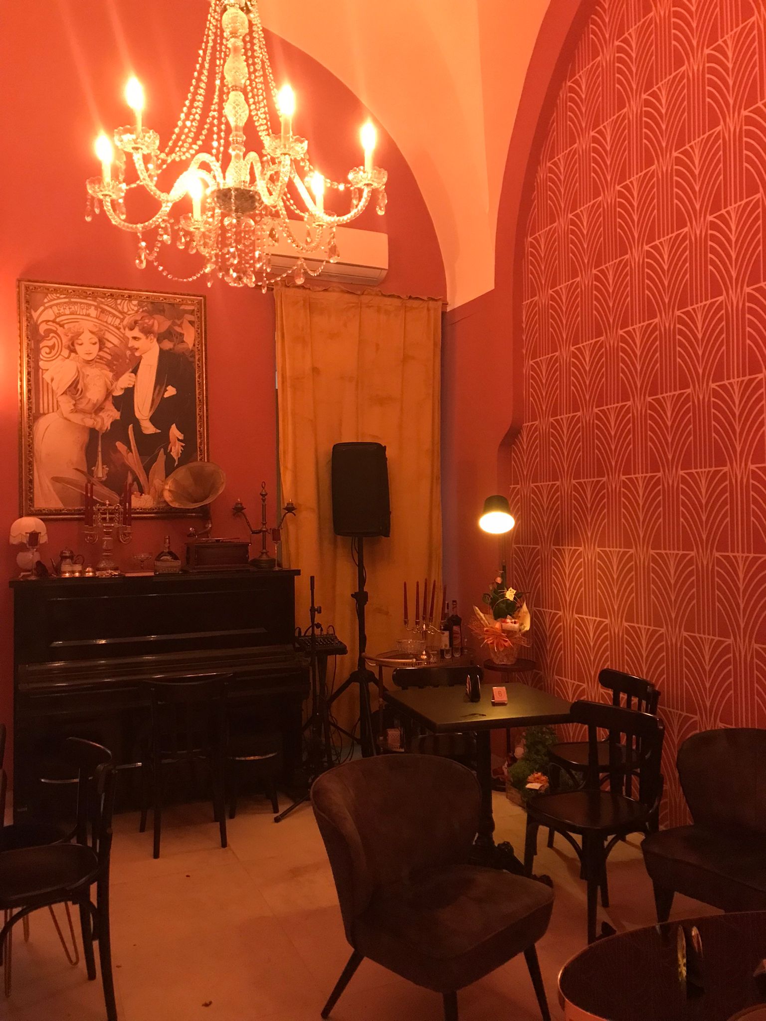 Intanto dalla cucina vediamo servire dei taglieri che non ci lasciano indifferenti e allora ne approfittiamo per prendere posto anche noi; era la sera dell’inaugurazione e al pianoforte, proprio in stile con la filosofia del locale, una notevole Carla Petrachi ci fa rilassare e divertire mentre apprezziamo il nostro cocktail dal profumo di rose.