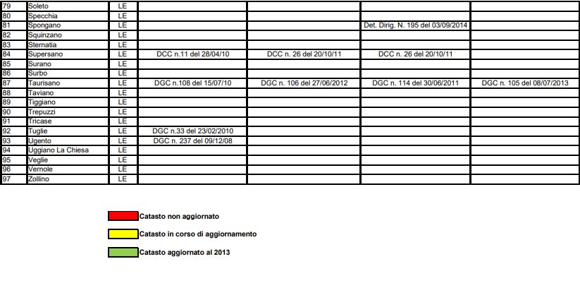 Dunque la vergogna che si rincorre tra i tabellari del catasto (nella foto) – in questo caso, come già ribadito, si fa riferimento al territorio della provincia di Lecce – riguarda in particolar modo vaste estensioni di area coltivata e area boschiva che vanno – in ordine alfabetico – da Acquarica del Capo sino a Zollino, mai censite realmente: è evidente cosa abbiamo di fronte.
