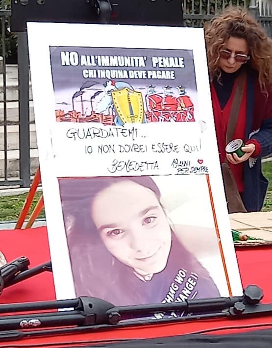 Sono qui anche come una madre che ha perso le tracce della sua primogenita ben 29 anni fa per cause ignote. La morte dei giovani e del nostro futuro sono invece i fumi e le polveri cancerogene emesse dall’ex Ilva e da altri impianti industriali qui a Taranto.