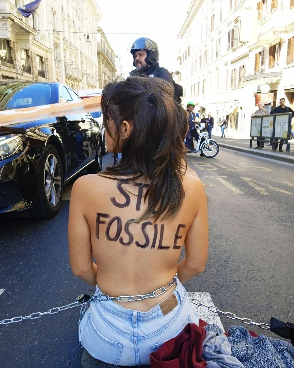 “La nostra disobbedienza civile è nuda ma naturale. Al contrario la nudità dell’incompetenza, dell’arroganza, dell’inazione del Governo è scandalosa ed oscena. Ancor di più di fronte al dramma che in queste ore stanno vivendo le famiglie e le imprese dell’Emilia Romagna. Per questo il Governo deve smettere di finanziare l’industria dei combustibili fossili e avviare una reale politica di transizione ecologica.