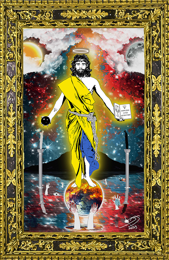 A Lecce, di recente, accanto al museo MUST, è comparsa la nuova opera ‘di critica sociale’ dell’artista LBS (Bruno Salvatore Latella), già presente in forma di Street Art presso la Placa George Orwell di Barcelona, e la città metropolitana di Reggio Calabria, dal titolo: “L’Inverno del Demiurgo“ (Demiurge’s Winter), di modeste dimensioni (180 x 112 cm).