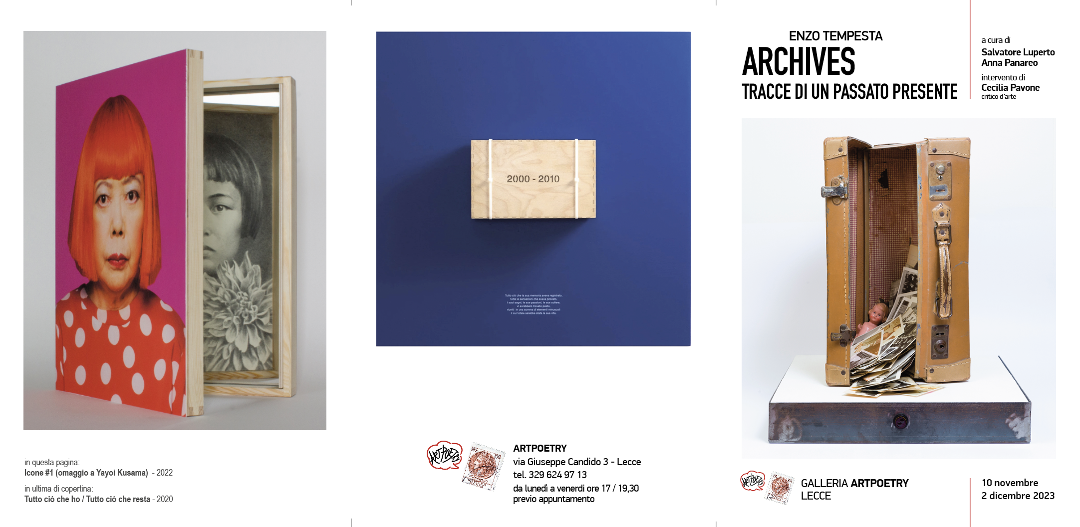 A Lecce, inaugurazione venerdì 10 novembre, ore 19, presso la Galleria ARTPOETRY, in via G. Candido 3, della Mostra ‘Archives – Tracce di un passato presente’, con le opere di Enzo Tempesta (nella foto). La mostra è curata da Salvatore Luperto e Anna Panareo, e conta su un intervento critico di Cecilia Pavone.