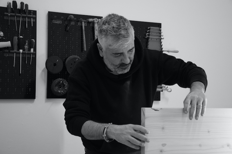 I suoi dipinti astratti, ricchi d’intensità e di energia, così come i complementi d’arredo da lui progettati e realizzati sono tutti pezzi unici: ispirazioni che hanno preso forma attraverso il disegno e un personalissimo processo di produzione. Materiali accuratamente selezionati, come legno pregiato, marmo, alluminio e fibra tessile, si traducono in mobili innovativi e sostenibili, d’impronta minimalista per il rigore delle linee e delle forme.