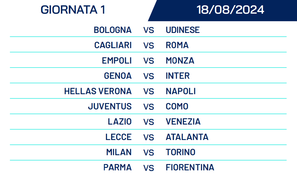 RITORNA IL CAMPIONATO. PRIMA GIORNATA IL 18 AGOSTO, MA ORARI DELLE PARTITE, E DATE ANTICIPI E POSTICIPI NON DISPONIBILI, SARANNO DECISI A PARTE