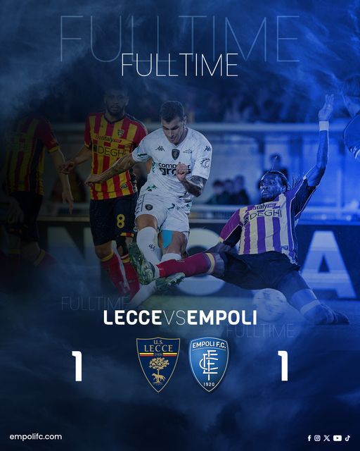 Nei cinque minuti del recupero finale, da annotare un contropiede dell’Empoli che sfrutta un Lecce totalmente sbilanciato, conclusione di Colombo salvata in calcio dalla ribattuta provvidenziale di Gaspar.
