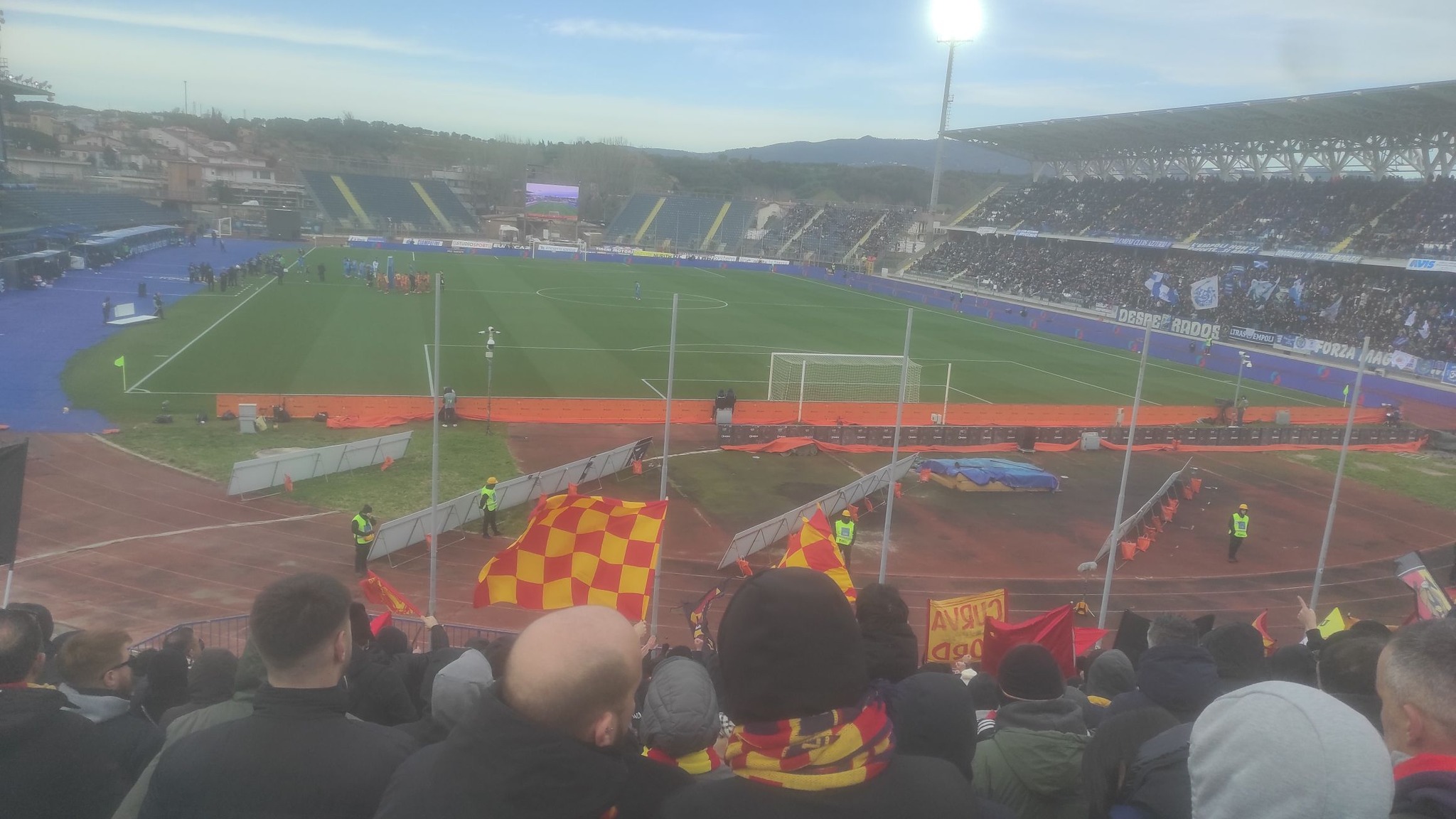 Agli ordini del signor Daniele Chiffi di Padova, in un pomeriggio di nuvole e freddo, allo stadio Carlo Castellani scendono in campo, per l’Empoli, scelti da Roberto D’Aversa: Seghetti; Goglichidze-Ismajli-Viti; Gyasi-Grassi-Maleh-Pezzella; Esposito-Cacace; Colombo; per il Lecce, scelti da Marco Giampaolo: Falcone; Guilbert-Baschirotto-Jean-Dorgu; Helgason-Coulibaly-Pierret; Pierotti-Krstovic-Morente.