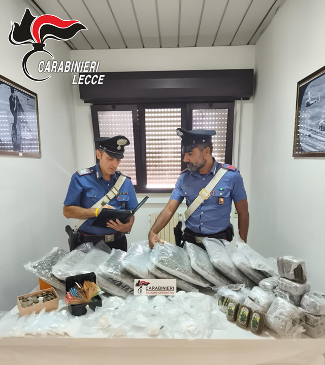 La vasta operazione condotta dai Carabinieri del Comando Provinciale di Lecce ha inferto un duro colpo al traffico di sostanze stupefacenti nella zona. L’intervento, realizzato con il supporto dello Squadrone Eliportato Cacciatori “Puglia”, del Nucleo Cinofili di Modugno (Ba) e dei militari dell’11° Reggimento “Puglia”, ha portato all’arresto di due persone, a una denuncia a piede libero e al sequestro di oltre venti chilogrammi di droga.