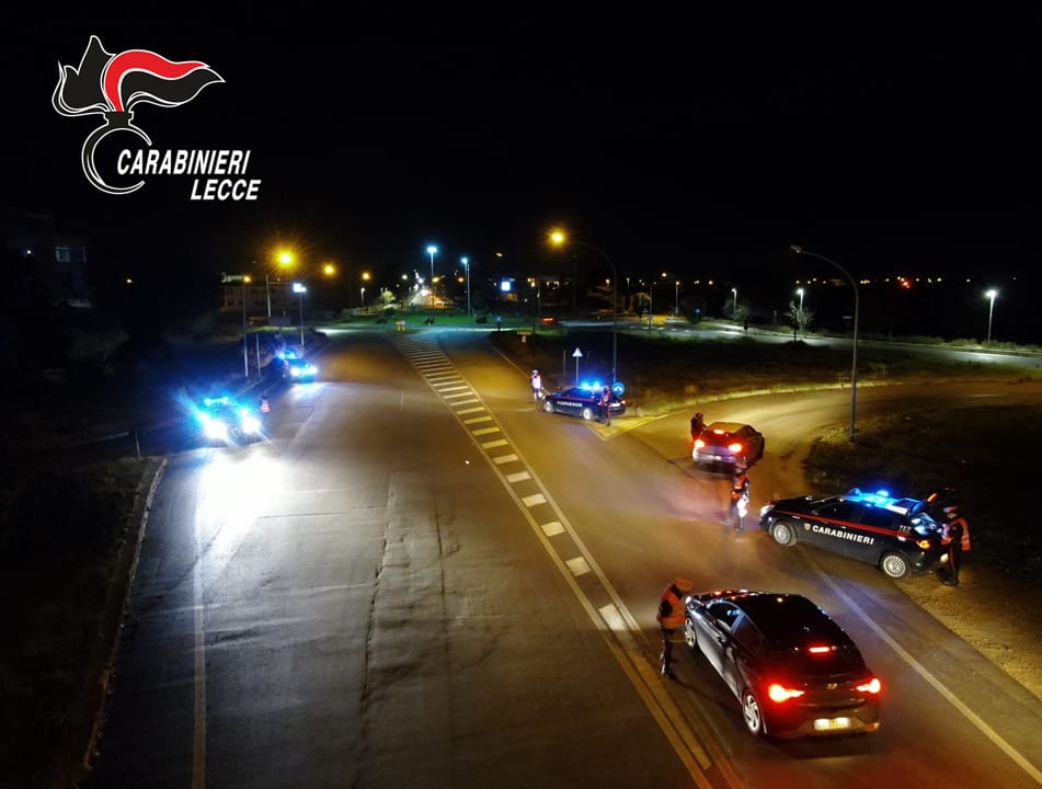 Parallelamente, lungo le principali arterie del territorio, i controlli dei Carabinieri hanno portato alla segnalazione di tre automobilisti presso la Procura della Repubblica di Lecce perché trovati alla guida con tasso alcolemico compreso tra 0,82 g/l e 1,49 g/l.