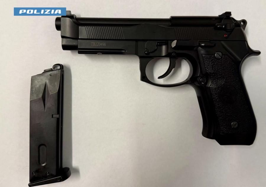 Le indagini condotte dalla Sezione Investigativa hanno permesso di rintracciare l’uomo, sottoposto a perquisizione personale e veicolare. Nel corso dei controlli, i poliziotti hanno trovato una pistola a gas modello Beretta, priva del tappo rosso di sicurezza, che è stata sequestrata.L’aggressore è stato denunciato a piede libero per minacce aggravate.