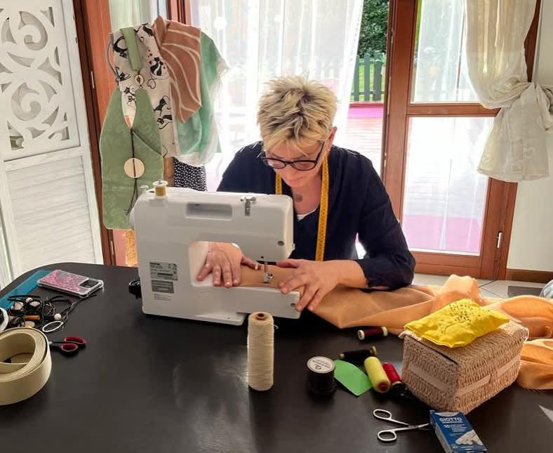 “Nella foto c è la macchina da cucire per le piccolissime rifiniture. Solitamente uso una Necchi industriale talmente vecchia e brutta tutta di ferro, che non si può guardare, ma è eccezionale.”