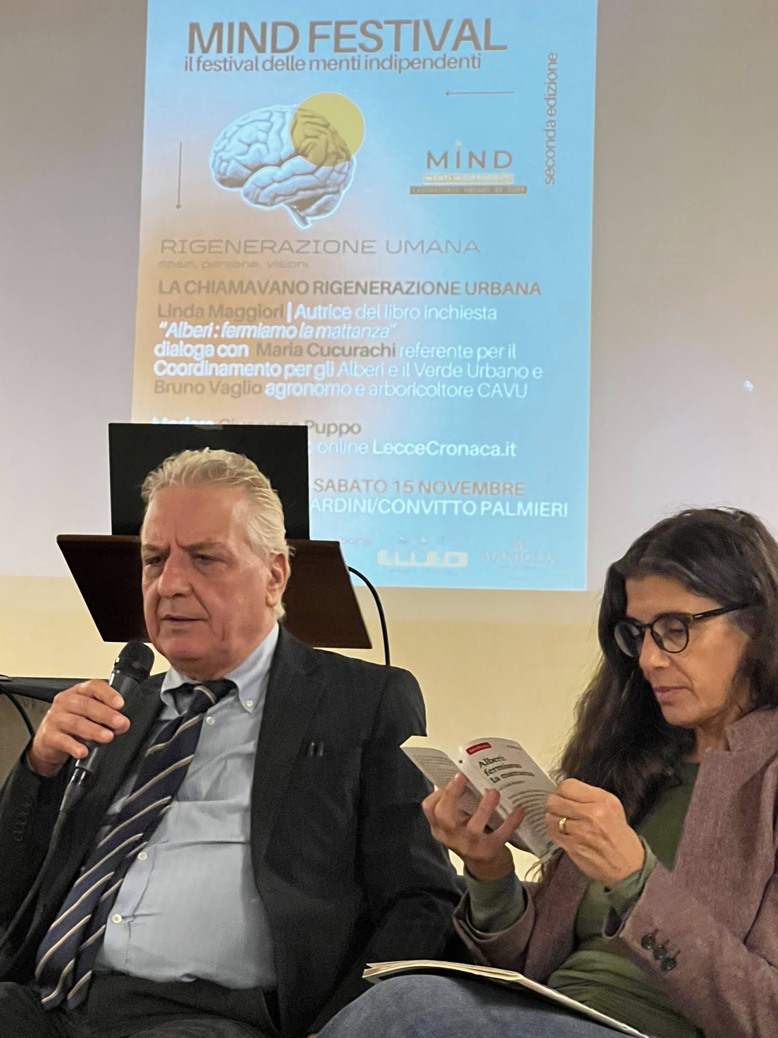 E’ stata una bella serata, confortata dalla presenza di qualificati relatori, oltre alla graditissima ospite: l’agronomo Bruno Vaglio e la referente del Coordinamento Alberi e Verde Urbano di Lecce, Maria Cucurachi; e gratificata dall’attenzione di un pubblico attento e partecipe, con contributi di spessore alla discussione.