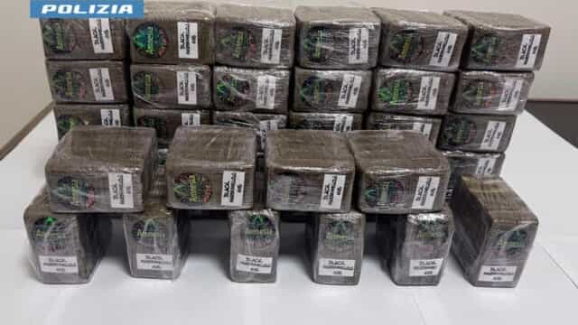 Fermata l’auto e identificato il conducente, i poliziotti hanno avvertito un forte odore provenire dall’abitacolo. La perquisizione ha portato alla scoperta di circa 200 panetti di hashish nascosti nel bagagliaio, per un peso complessivo di circa 20 chilogrammi.