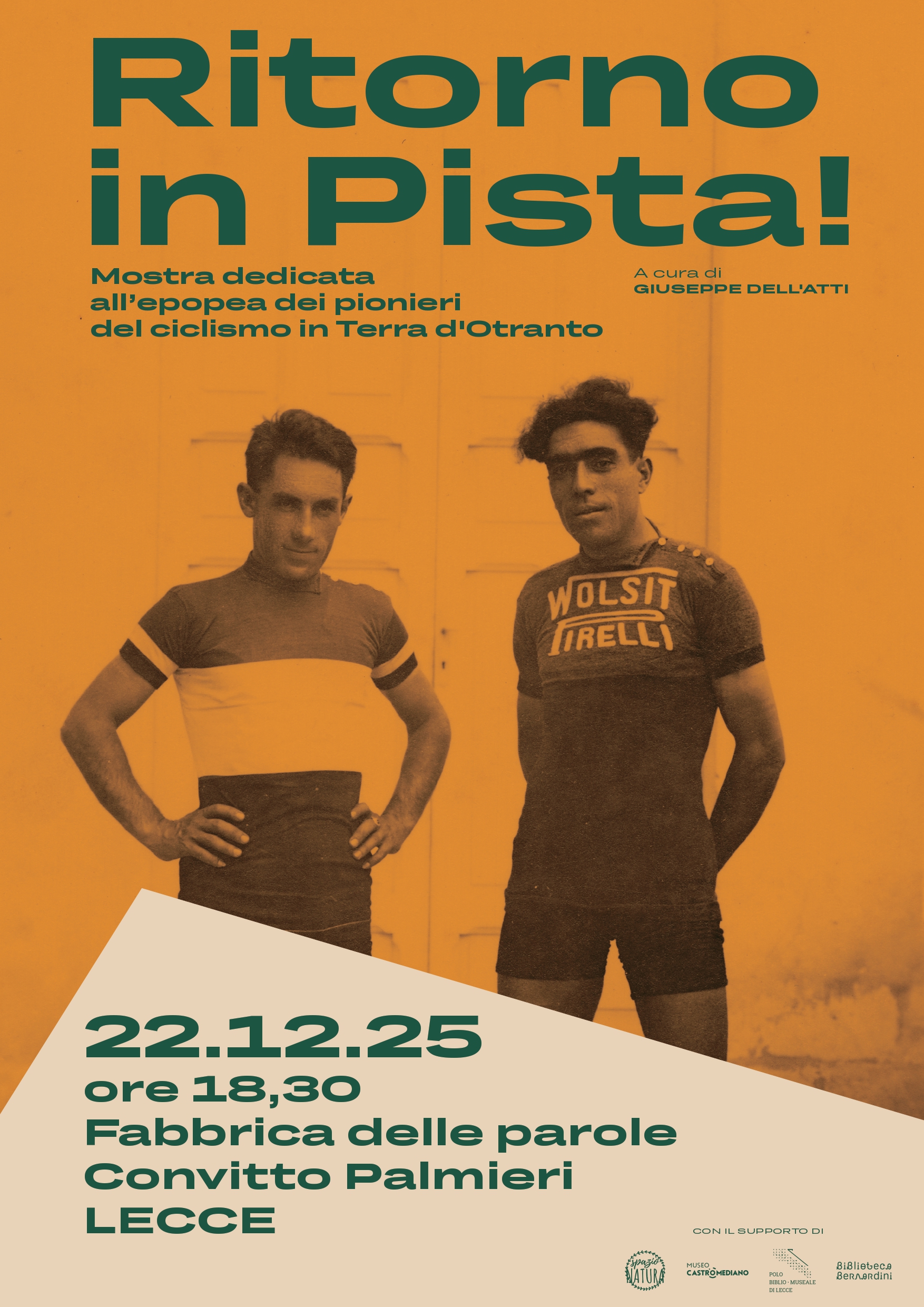Ci saremo anche noi, con l’amico Giuseppe Dell’Atti, a ripercorrere le pagine poco conosciute del ciclismo leccese. E lo faremo lunedì 22 dicembre 2025, alle ore 18:30, nella Fabbrica delle Parole (Ex Convitto Palmieri) di Lecce dove è in programma “Ritorno in Pista!”, un evento straordinario che promette di ricordare questa particolare memoria collettiva dello sport salentino; non si tratta solo di una mostra, ma è un vero e proprio viaggio nel cuore pulsante della storia sportiva del Salento.