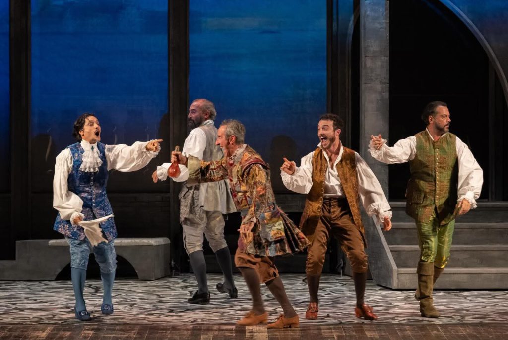 Con Caterina Murino sul palcoscenico de La vedova scaltra, nelle parti dei pretendenti della vedova, gli attori: