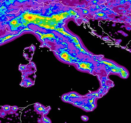 Nel nostro Salento, pure su tutta la Puglia, la situazione è analoga, come ognuno può agevolmente constatare di persona, e come documentano le mappe dell’inquinamento luminoso.