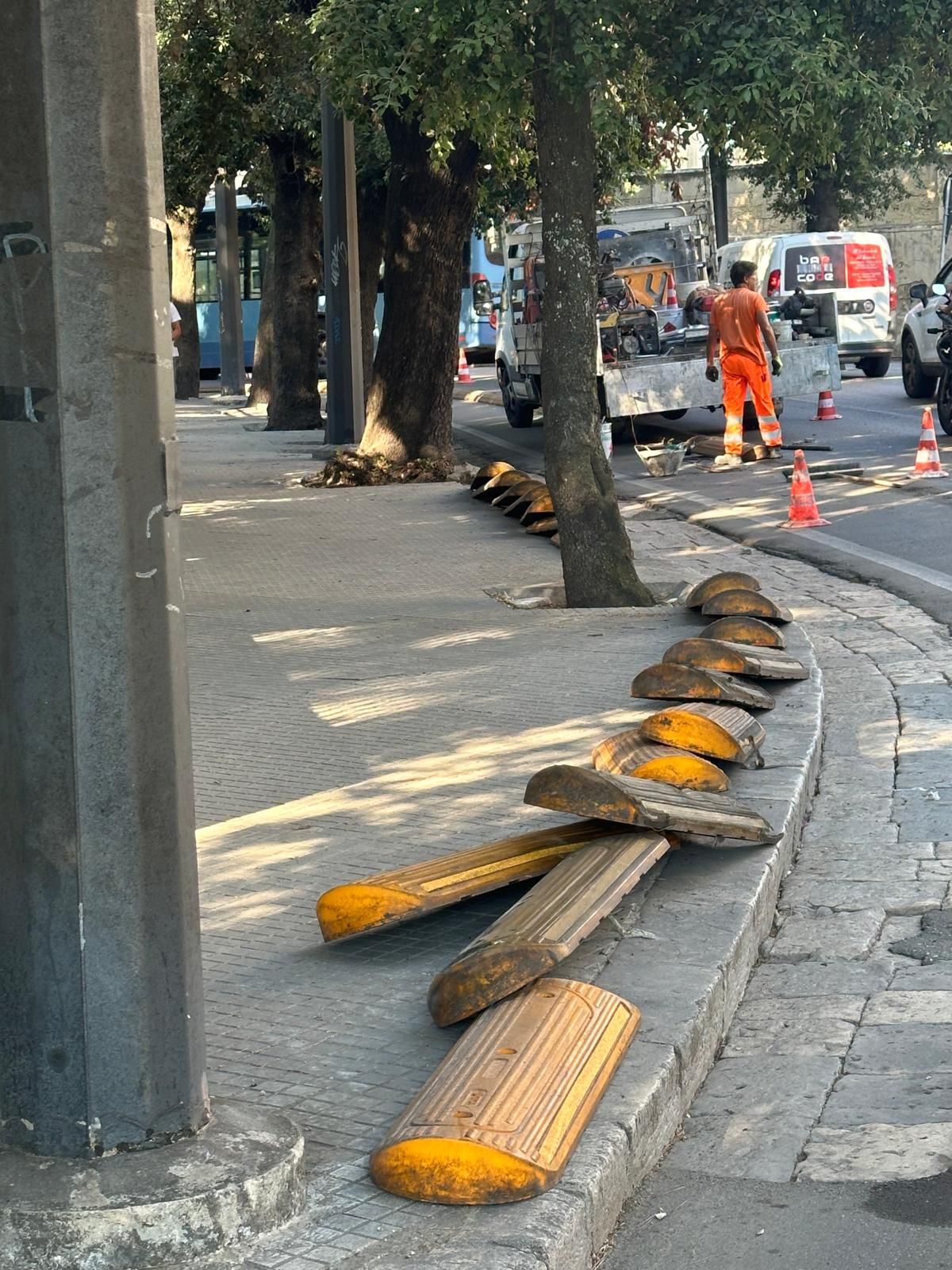 E che dire della prima rotatoria ciclabile di Lecce, all’incrocio tra via Benedetto Croce, viale Aldo Moro e via Pitagora, inizialmente protetta da cordoli in gomma e privata di quella protezione appena il giorno successivo, come se la sicurezza potesse essere un elemento opzionale?