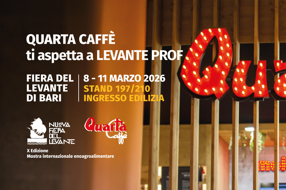 Dall’8 all’11 marzo 2026, QUARTA CAFFÈ S.P.A. sarà tra i protagonisti di Levante PROF, la più importante fiera del Mezzogiorno dedicata al settore agroalimentare e all’eccellenza del Made in Italy. L’appuntamento si svolgerà presso la Fiera del Levante di Bari, punto di riferimento strategico per professionisti, buyer e operatori del comparto horeca.