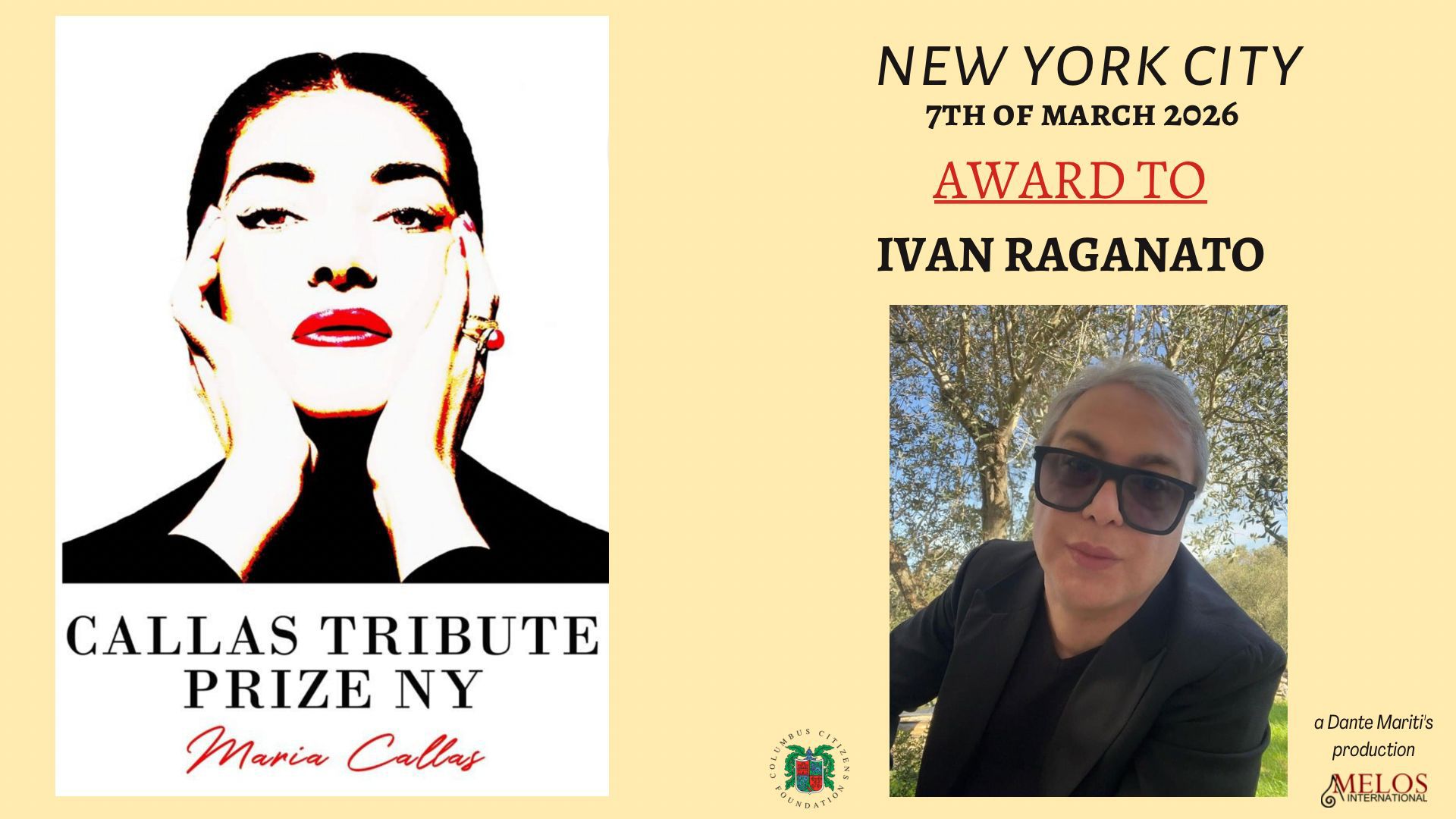 IVAN RAGANATO PREMIATO A NEW YORK AL TRIBUTE MARIA CALLAS 2026