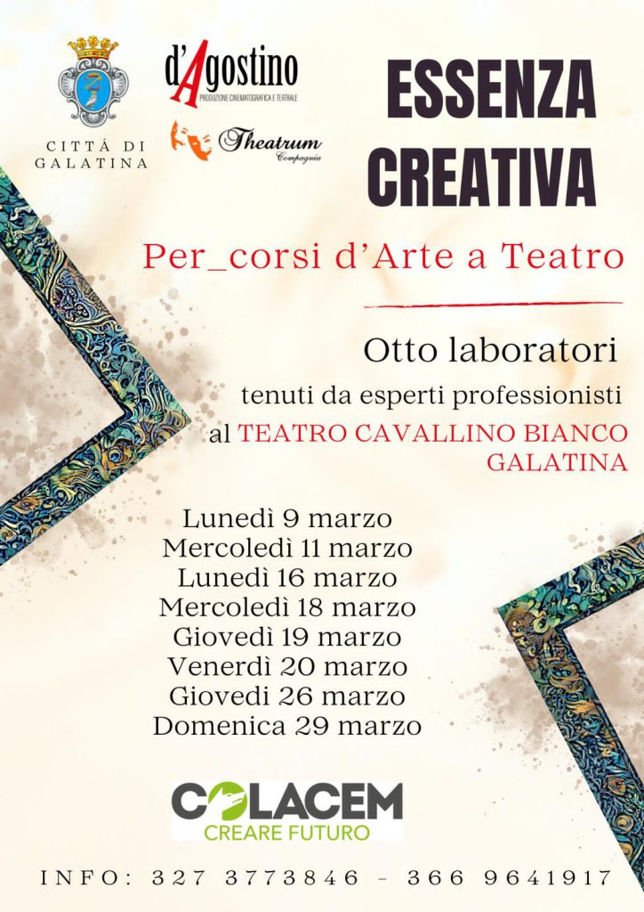(Rdl) ____________ Si conclude domani domenica 29 marzo con il laboratorio di lettura interpretativa a cura del Maestro Ivan Raganato, attore, regista e direttore artistico della scuola d’arte Scena Muta, l’iniziativa a cura della Vito d’Agostino produzioni e della compagnia Teathrum in collaborazione con l’amministrazione comunale di Galatina.