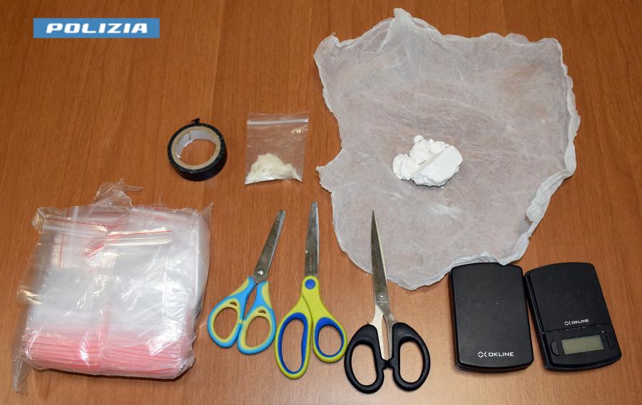 La perquisizione permetteva il rinvenimento di 23 grammi circa di cocaina in forma solida, e 5 grammi di crack riposti in un contenitore posizionato in cassetto della cucina, assieme a un cospicuo corredo di oggetti funzionali al confezionamento e allo spaccio dello stupefacente, quali: un rotolo di nastro adesivo nero, tre forbici, due bilancini elettronici sporchi di polvere bianca, più numerosissime bustine di piccolo taglio a chiusura ermetica.