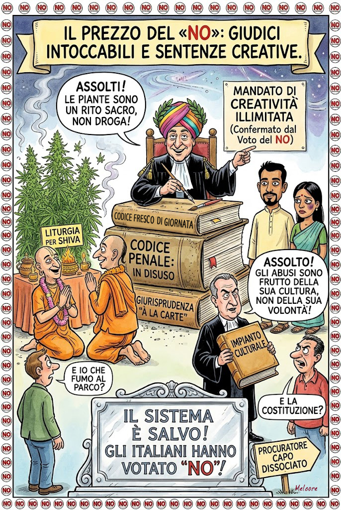 In democrazia il voto dei cittadini è sacro, gli italiani hanno votato NO…ma c’è un però. C’era una volta il Codice Penale, un tomo noioso e polveroso dove a una determinata azione corrispondeva una determinata sanzione. Oggi, invece, le aule di tribunale assomigliano sempre di più a dei salotti letterari dove la legge non si applica, ma si interpreta, si modella, si smussa a seconda delle vibrazioni cosmiche o dell’ispirazione del magistrato di turno.
