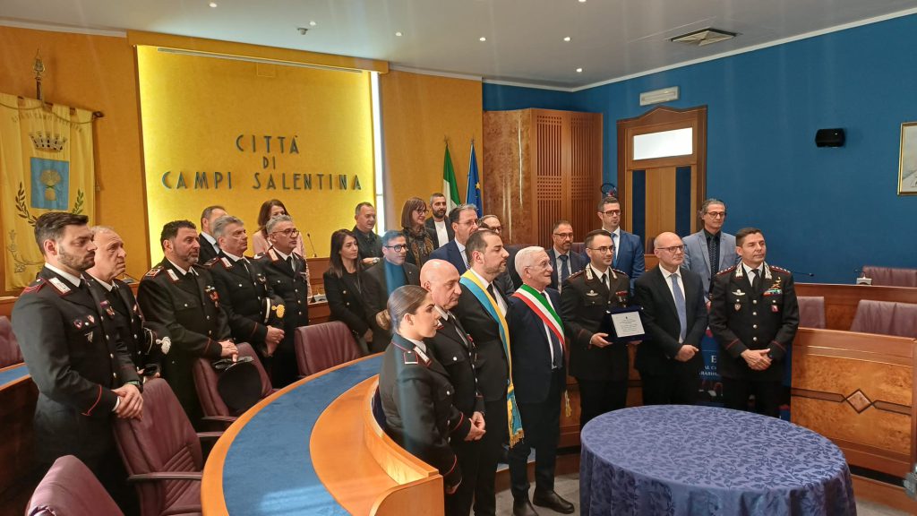 Si è tenuta nella giornata di ieri, all’interno della sala consiliare del Municipio di Campi Salentina, una cerimonia ufficiale di conferimento di un encomio al Comando Compagnia dei Carabinieri locale. Il riconoscimento è stato attribuito per il valore, la competenza e la prontezza dimostrati durante l’operazione seguita al violento assalto a un furgone portavalori avvenuto il 9 febbraio lungo la SS613 Brindisi–Lecce.