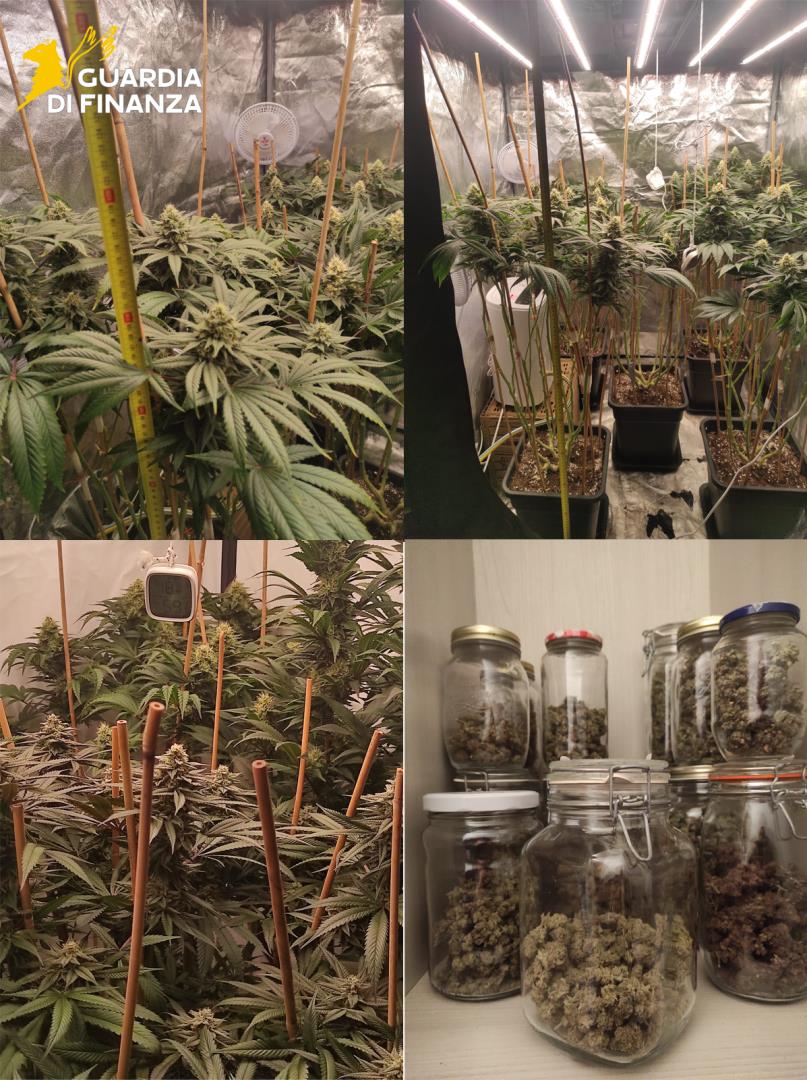 L’attività permetteva di appurare come il predetto immobile fosse stato adibito, dal giovane occupante, alla coltivazione indoor di marijuana, venendo rinvenute e sottoposte a sequestro: n. 10 piante di cannabis di circa 1 mt., all’interno di altrettanti vasi; n. 3 blister contenenti 19 semi di canapa; n. 16 barattoli contenenti infiorescenze di marijuana; n. 2 serre portatili; n. 7 ventilatori, 3 deumidificatori, n. 1 irrigatore, n. 6 termoigrometri, n. 14 bottiglie di concime liquido per canapa; raccordi di areazione, vasi, terriccio e ulteriori materiali necessari per la coltivazione della sostanza stupefacente.